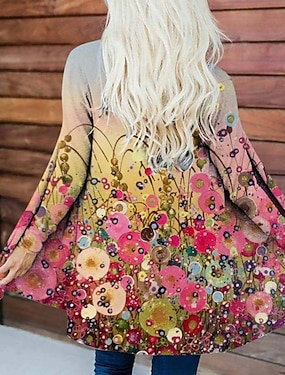 女性用 カジュアルジャケット 保温 快適 不規則な裾 エレガント ヴィンテージ ファッション 近代の フラワー ストリート カジュアル アスレイジャー 日常 ロング ノーカラー レギュラー 長袖 アウターウェア ピンク ブルー パープル 春 秋