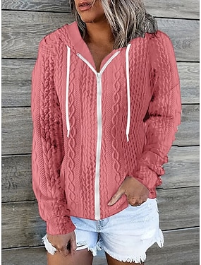 女性用 パーカージャケット 快適 高通気性 ジッパー ポケット カジュアル 平織り バケーション ストリート カジュアル デイリーウェア ジッパ- レギュラー フード付き レギュラー 長袖 アウターウェア ブラック ピンク ワイン 春 秋