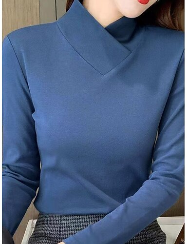 女性用 ブラウス 純色 エレガント スタイリッシュ ベーシック 長袖 タートルネック レギュラートップス 日常 ブラック ホワイト ブルー ブラウン 春 秋 冬