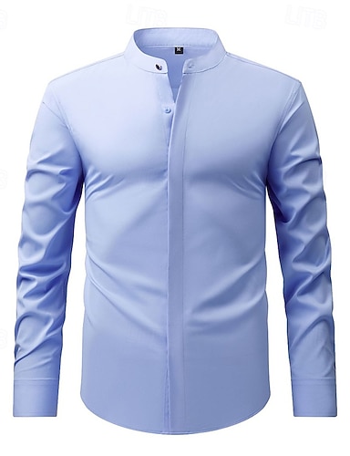 男性用 シャツ ドレスシャツ ノンアイロンシャツ バンドカラーシャツ 平織り ビジネス 日常 ブラック ホワイト イエロー ワイン 長袖 スタンドカラー 夏 春 衣類