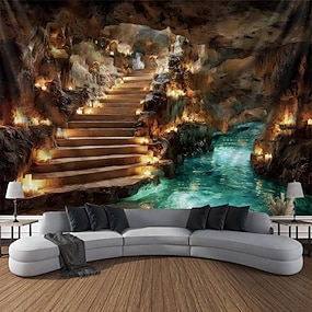 大きな壁タペストリー アールデコ ブランケット カーテン ピクニック テーブル クロス ぶら下げ ホーム 寝室 リビング ルーム 寮の装飾 ポリエステル繊維 風景 山 水 湖 海 洞窟