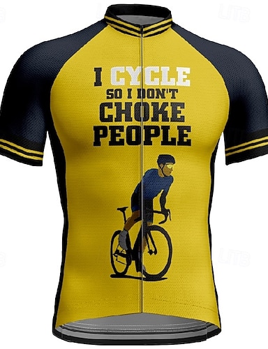 男性用 サイクリングジャージー 文字&番号 半袖 バイク Tシャツ ジャージー 3つのリアポケット付き マウンテンサイクリング 速乾性 人間工学デザイン ウィッキング 高通気性 スポーツ イエロー ブルー パープル 衣類