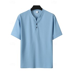 男性用 ボタンTシャツ Tシャツ ヘンリーシャツ ワッフルニットTシャツ 半袖 ヘンリー 春夏 平織り ファッション デザイナー ベーシック ボタン バケーション ストリート お出かけ ブラック ホワイト レッド メンズトップTシャツ