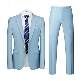 男性用 ブレザー ビジネス カクテルパーティー ウェディングパーティー ファッション カジュアル 春 秋 ポリエステル 平織り ポケット ボタン 快適 シングルブレスト ブレザー ブラック ホワイト ライトブルー