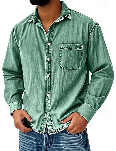 男性用 シャツ カジュアルシャツ ヴィンテージシャツ ボタンアップシャツ ブラック ライトグリーン ワイン ネイビーブルー ブルー 長袖 平織り ラペル お出かけ ストリートウェア ポケット 衣類 ファッション レトリ/ヴィンテージ