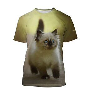 男性用 男女兼用 動物 猫 グラフィック Tシャツ 半袖 Tシャツ 3Dプリント クルーネック シャツ スポーツ デザイナー カジュアル アウトドア ストリート 日常 ブラック / ホワイト 黒+黑 ブラック 夏 衣類 S M L XL XXL 3XL