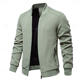 男性用 ワッフルジャケット カジュアルジャケット カジュアル/普段着 セクシー 春 & 秋 単色/無地 カジュアル スタンドカラー レギュラー アプリコット ブラック ライトグリーン カーキ色 アーミーグリーン ジャケット