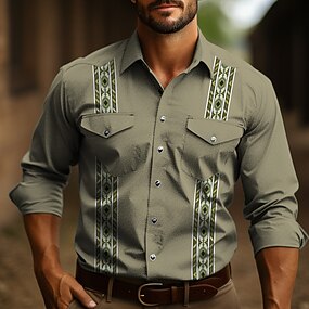 男性用 トライバル グラフィック ビンテージ シャツ ウエスタンシャツ カウボーイシャツ 長袖 ファッション デザイナー カジュアル アウトドア 日常 秋冬 折襟 プリント ライトグリーン ダスティローズ ブルー グリーン