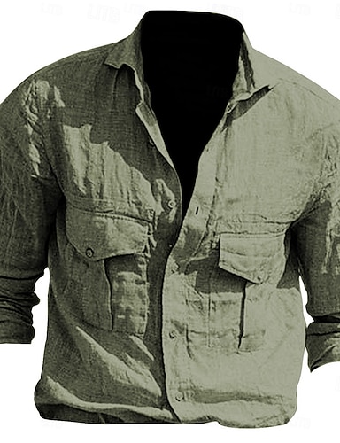 男性用 シャツ カジュアルシャツ ボタンアップシャツ ブラック ホワイト ライトグリーン カーキ色 アーミーグリーン 長袖 平織り カラー アウトドア お出かけ フロントポケット 衣類 ファッション カジュアル 快適