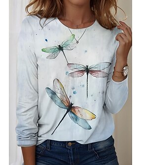 レディース Tシャツ クルーネック 長袖 チュニック カジュアル プリント レギュラー トップス デイリープリント ライトグリーン 春 秋