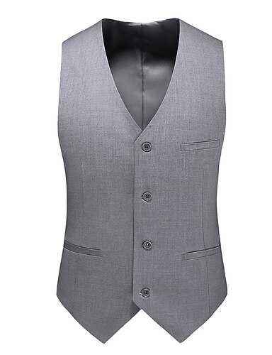男性用 ベスト スーツベスト ジレ 結婚式 ビジネス カジュアル ウェディングパーティー 1920年代風 スマートカジュアル ポリエステル ソリッド シングルブレスト シャツカラー スリム ブラック ルビーレッド ライトグレー ベスト