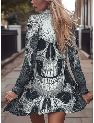 ハロウィン レディース コート 軽量 快適 ドクロ プリント ビンテージ アート カジュアル スカル カジュアル ショート コラーレス レギュラーフィット 長袖 アウター ブラック ライトグレー ダークグレー 春 秋