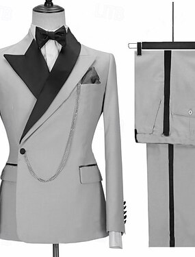 男性用 結婚式 パーティー スーツ ライト ファッション ビジネス ソリッド スタンダードフィット 3点セット シングルブレスト 一つボタン