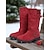 調節可能なバックルと滑り止めソールを備えた女性用レッドフェイクスエードミッドカーフブーツ、クリスマス用のカジュアルで快適なニットブーツ &普段着