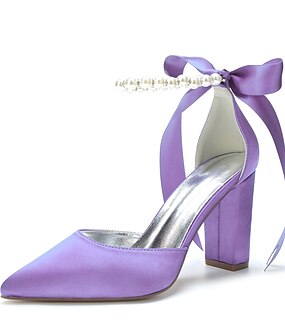エレガントなグリーンのサテン アンクル ストラップ ヒール - ポインテッド トゥ、パール リボン ディテール、女性用ブロック ヒール パンプス - 結婚式やパーティーに最適