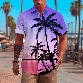 男性用 ココナッツの木 自然风光 熱帯植物 シャツ アロハシャツ 半袖 シャツ 折襟 ファッション ハワイアン デザイナー アウトドア ストリート カジュアル 白 + 赤 ブルー ライトパープル プリント S M L