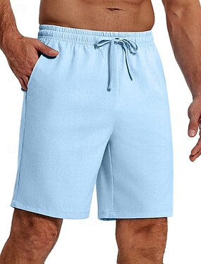 男性用 リネンショーツ 平織り 膝丈 アウトドア オフィス 日常 旅行度假风 エスニック ダークブルー 伸縮性なし