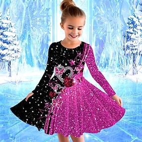 女子 3D スノーフレーク柄 ドレス 長袖 夏 春 バケーション 日常 祝日 プリンセス 美しい 甘い 子供 4〜12年 カジュアルドレス A ラインドレス 膝丈 レギュラー