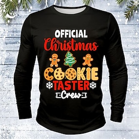 クリスマス 男性用 おかしい ジンジャークッキー Tシャツ 長袖 Tシャツ 3Dプリント クルーネック シャツ ファッション ベーシック 3D ストリート カジュアル 日常 ブラック ルビーレッド ブルー 夏 春 衣類 S M L XL XXL XXXL
