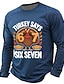 感謝祭 男性用 Turkey 面白いスラング Tシャツ 長袖 Tシャツ 3Dプリント クルーネック シャツ 日常 デザイナー ストリート カジュアル ブラック ルビーレッド ブルー 夏 春 秋 衣類 S M L XL XXL XXXL