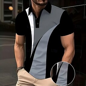 男性用 カラーブロック ポロ 半袖 ポロシャツ 襟付きシャツ ビジネスカジュアル アウトドア デイリーウェア 部屋着 3Dプリント 夏 ブラック