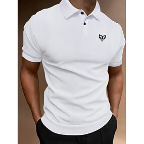 男性用 ゴルフシャツ ポロ ワーク ビジネス ポロカラー クラシック 半袖 ベーシック 虎 単色/無地 刺しゅう ボタンフロント 夏 春夏 ホワイト ゴルフシャツ