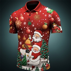 クリスマス メンズ サンタクロース 3D ポロ サンタクロース カジュアル ゴルフ 半袖 アウトドア デイリーウェア ストリートウェア 秋 3D プリント ターンダウン イエロー ワインレッド ポリエステル