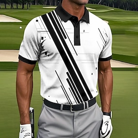 男性用 ストライプ 幾何学的な ラグビーポロ 長袖 ポロシャツ ラペル ビジネスカジュアル アスレイジャー デイリーウェア 3Dプリント ボタン 春 秋 冬 ブラック ホワイト