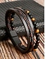男性用天然石とステンレススチールのビーズブレスレット - タイガーアイとブラックオニキス - スタイリッシュで耐久性のあるアクセサリー