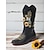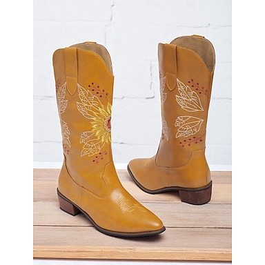 レディースカウボーイブーツ - カジュアルウェア、フェスティバル、パーティーに最適な、ウエスタン刺繍のひまわり柄フェイクレザーチャンキーヒールブーツ