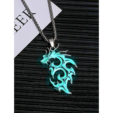 メンズハロウィン 光るドラゴンペンダントネックレス - パーティーやコスプレに最適な合金ゴシックパンクジュエリー