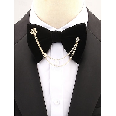 王冠とチェーンのディテールが施された男性用ベルベット蝶ネクタイ - フォーマルな場、結婚式、タキシードに最適なエレガントなアクセサリー