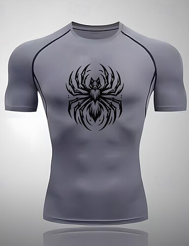 男性用 コンプレッション・シャツ アスレチックシャツ ジムシャツ フィットネスシャツ 半袖 Tシャツ カジュアル アスレイジャー クモ 速乾性 ソフト 高通気性 ジムトレーニング ウォーキング ジョギング スポーツウェア アクティブウェア ブラック ホワイト グレー