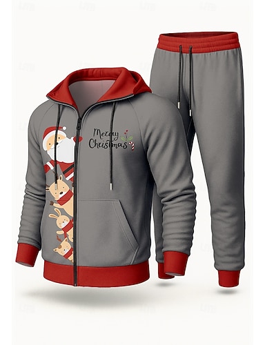クリスマス 男性用 パーカー トラックスーツ 2ピーストラックスーツ ドローストリング ジッパーを閉める カラーグラデーション スーツウェア 秋 レッド ボウケーション 屋外 トラベル ライトウェイト ファッション 長袖 スポーツ アクティブウェア 伸縮性あり レギュラー