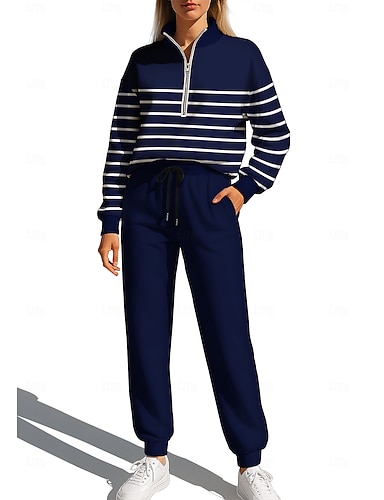 女性用 スウェットシャツ トラックスーツ 2ピーストラックスーツ ドローストリング ジッパーを閉める ストライプ スーツウェア 春 ブルー ボウケーション 屋外 トラベル ライトウェイト ファッション 長袖 スポーツ アクティブウェア 伸縮性あり レギュラー