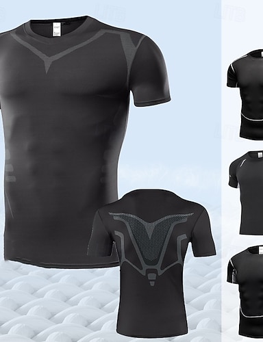 男性用 コンプレッション・シャツ アスレチックシャツ ジムシャツ フィットネスシャツ 半袖 Tシャツ カジュアル アスレイジャー クモ 速乾性 ソフト 高通気性 ジムトレーニング ウォーキング ジョギング スポーツウェア アクティブウェア ブラック ホワイト ルビーレッド