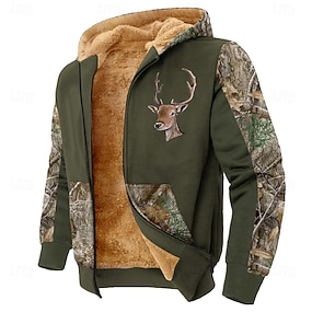 男性用 カモフラージュ しか フリース フーディーズ ファッション エスニック カウボーイ 長袖 フード付き パーティー ハンティング ブラック ブラウン カーキ色 ダークブルー ミリタリーグリーン ドローストリング 秋 冬 デザイナー S M L XL 2XL 3XL