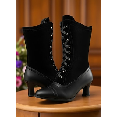 女性用ヴィンテージ ギャツビー ビクトリア朝 レースアップ ミッドヒール ブラック フェイクレザー ブーツ - 日常着、コスプレ、1920 年代のギャツビー パーティーに最適なスチームパンク ゴシック スタイル