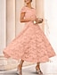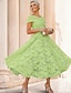 Aライン アンクル丈 カクテルドレス エレガント フローラル 高分割 半袖 オフショルダー 結婚式 フォーマル シフォン ストレッチ生地 とともに プリーツ フリル ポケット
