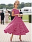 Aライン アンクル丈 カクテルドレス パーティードレス エレガント ヴィンテージ ハーフスリーブ Vネック 結婚式 フォーマル ジャカード とともに フラワープリント スリット ポケット