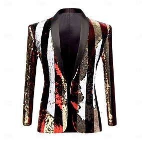 男性用 ブレザー ビジネス カクテルパーティー ウェディングパーティー ファッション カジュアル 春 秋 ポリエステル 段階的 スパンコール ポケット 快適 シングルブレスト ブレザー ブルー パープル ゴールド グリーン