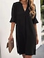 女性用 ミニドレス カジュアルドレス 冬のドレス シフトドレス ファッション 近代の 日常 ビーチ 週末 レギュラー ピュアカラー 長袖 Vネック ブラック 夏 春 秋