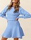 女性用 ミニドレス セータードレス エレガント ファッション 近代の パフスリーブ 日常 祝日 お出かけ レギュラー 平織り 長袖 クルーネック ブラック ピンク ルビーレッド ブルー 秋 冬
