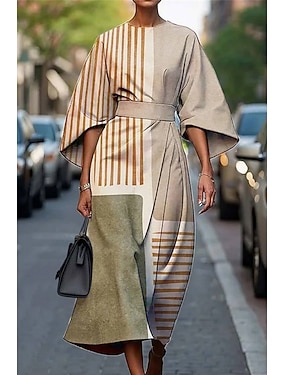 女性用 ロングドレス マキシドレス カジュアルドレス サマードレス ファッション 近代の 日常 デート 週末 レギュラー 幾何学模様 七分袖 クルーネック ブラック イエロー ライトグリーン ピンク 夏