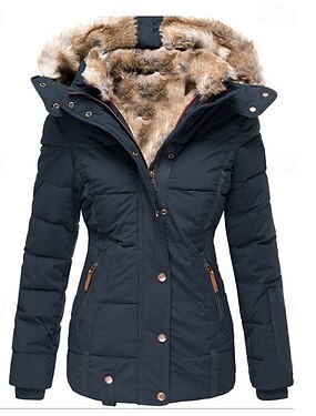 女性用 冬物ジャケット パーカー 保温 快適 ジッパー ポケット ファッション 近代の カジュアル 平織り お出かけ 週末 ジッパ- レギュラー ノーカラー レギュラー 長袖 アウターウェア ブラック ネイビーブルー アプリコット 冬