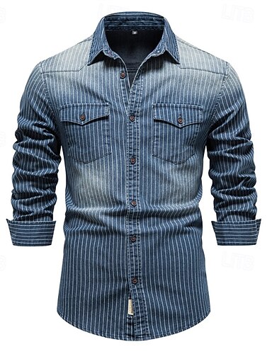 男性用 シャツ シャンブレーシャツ カリコシャツ カジュアルシャツ ボタンアップシャツ デニムシャツ デニムブルー ブラック ネイビーブルー ライトブルー 長袖 平織り カラー バケーション 日常 衣類 コットン ファッション カジュアル