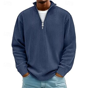 男性用 プルオーバースウェットシャツ ジップポロ バケーション ストリート ファスナー 長袖 ファッション ベーシック 純色 平織り ファッション 秋 春 & 秋 オールシーズン リラックスフィット ブラック ピンク アーミーグリーン ダークブルー ブルー ブラウン プルオーバースウェットシャツ