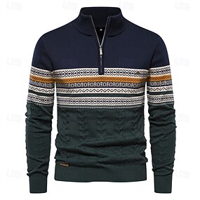 男性用 ニット ストライプ ハーフジッパー ニット エレガント クリスマスギフト 家 衣類 ビショップ 秋 冬 ネイビーブルー ダークグリーン S M L