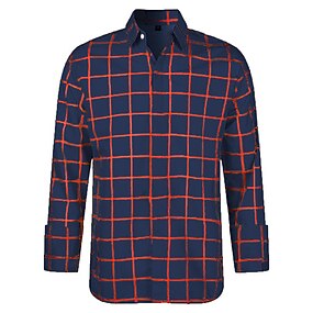 男性用 シャツ チェック パーティー ワーク イエロー ネイビーブルー オレンジ 長袖 折襟 春 & 秋 衣類 プリント