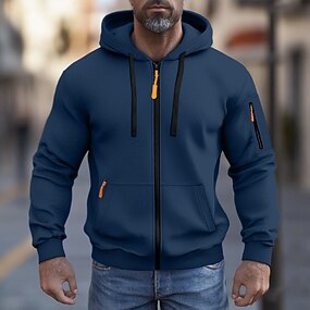 男性用 パーカー フルジップパーカー ブラック ホワイト ネイビーブルー カーキ色 グレー フード付き 平織り ジャカード ポケット スポーツ 日常 祝日 ストリートファッション ベーシック カジュアル 衣類 パーカー トレーナー 長袖
